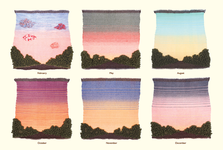 Road-trip-tychs is a six-piece handwoven tapestry series inspired by sunsets and memories shared on the road. Each 12” composition is hand-dyed and hand-woven, capturing the skies that colored my journeys between home in New Jersey and school in Savannah, Georgia. What began as difficult drives on my own eventually became treasured adventures shared with my boyfriend — eight trips marking the start and end of a new semester. These woven pieces honor the memories we made, the care we gave each other along the way, and the quiet, luminous moments spent watching clouds drift and colors shift across the sky.