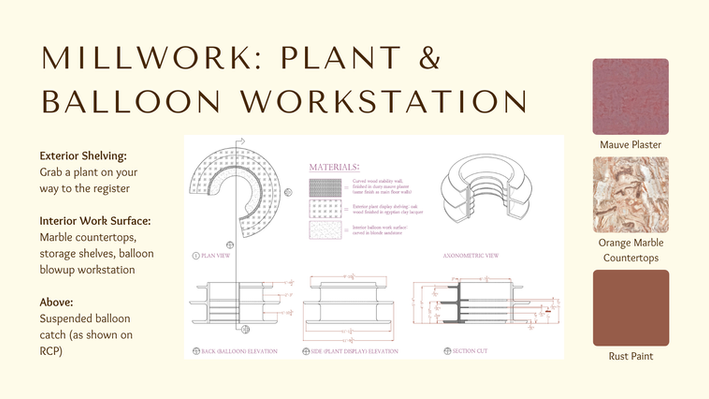 Eden Florals is a retail florist design imagined for Bell Works, the revitalized “Metroburb” in Holmdel, New Jersey. Informed by my years working as a florist, the design honors both the artistry and labor behind floral work—an inspiring environment that uplifts the senses and is thoughtful of the everyday tasks of the craft. The space merges the precise and geometric Bauhaus architecture of Bell Works with freeform, organic lines found in nature; marrying structure with softness. Every element of Eden Florals aims to provide a smooth, functional flow for its employees as well as an immersive and inviting shopping experience for its customers.